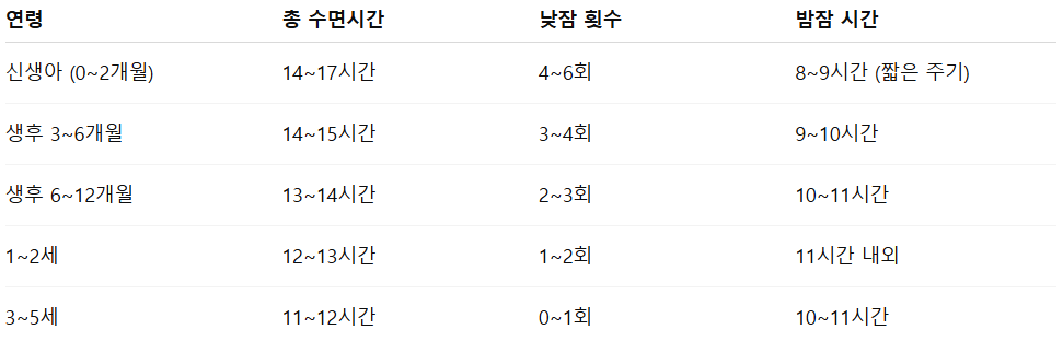 아이마다 차이는 있지만, 평균적인 기준을 알아두면 계획적인 수면 훈련이 쉬워집니다.